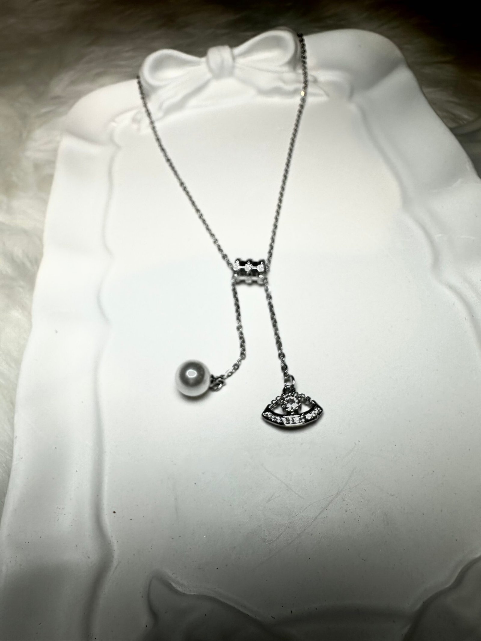About this item: High Shine Crystal Pendant Silver Long Chain Necklace With Rhinestones